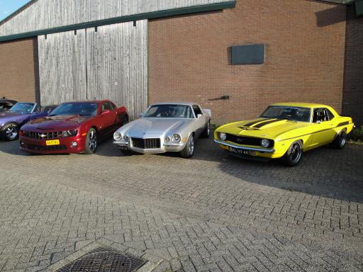 One of the last drives this year was to a BBQ organized by Mike who has a parts shop/garage in Breda, there were some nice cars there! I really love the new Camaro but they are too expensive for me. (for a new V6 model we pay around $100.000, the V8 is even more thanks to our tax system) These pics show the difference in size between 1st, 2nd and 5th gen Camaros.